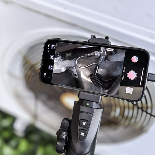 Avanceret inspektionskamera som bruges med smartphone, 360° justerbar probe, IP67-vandtæthed og nat-visning. Perfekt til præcise inspektioner i trange og mørke områder. Optager billeder og video direkte på din telefon.