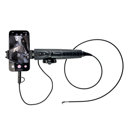 Perfekt til præcise inspektioner i trange og mørke områder. Optager billeder og video direkte på din telefon.