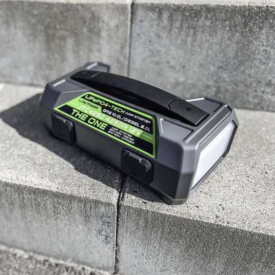Startbooster med 4250A: Leverer en max strøm på 4250 ampere, og er i stand til at starte køretøjer med op til 10L benzin- og 8L dieselmotorer.